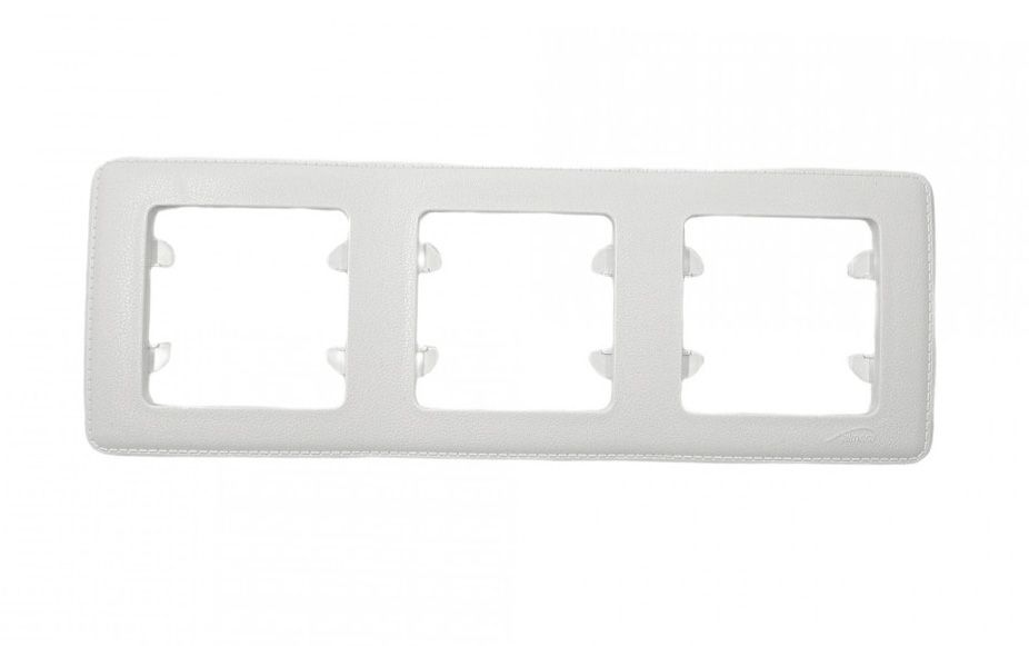 Трьохмісна горизонтальна рамка серії DOGU від Almera — це естетичне й функціональне рішення для встановлення трьох механізмів електрофурнітури (вимикачів або розеток) у єдиному блоці. Виконана у класичному білому кольорі з декоративним ефектом, що підходить для сучасних інтер’єрів.