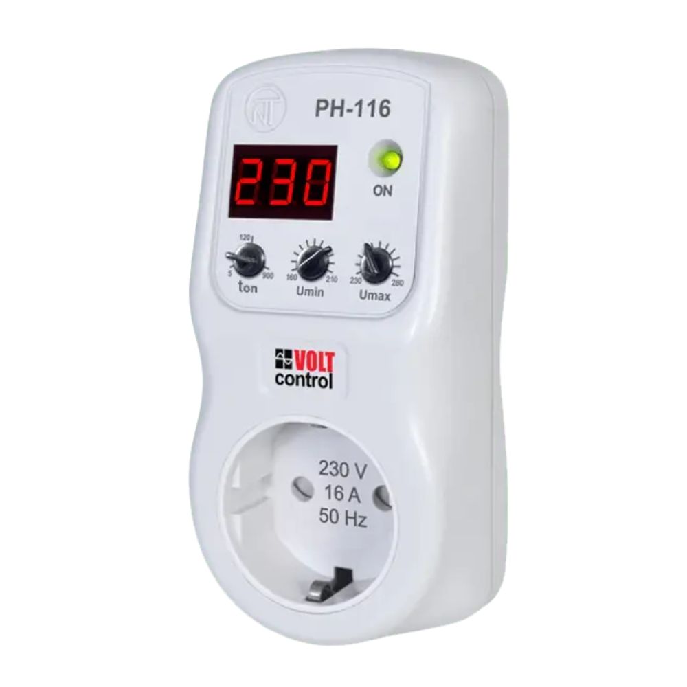 Реле напруги РН-116 призначене для вимкнення побутового та промислового 1-фазного навантаження 220 В, 50 Гц потужністю до 3,5 кВт (до 16 А). Використовують для захисту обладнання — холодильників, кондиціонерів, пральних машин, теле- та відеоапаратів та іншого. Застосовується у разі неприпустимих коливань напруги в мережі та наслідків обривання нейтралі, з автоматичним повторним увімкненням після відновлення параметрів мережі.
