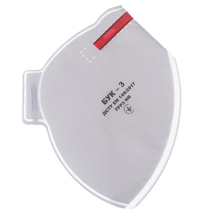 Респіратор БУК FFP3 з клапаном - це високоефективний захисний засіб, призначений для захисту органів дихання від шкідливих речовин, включаючи тверді та рідкі аерозолі, а також бактерії та віруси. Виріб має клас захисту FFP3, що гарантує фільтрацію не менше 99% часток розміром до 0,6 мкм. Респіратор оснащений клапаном, що полегшує видалення відпрацьованого повітря та поліпшує комфорт під час використання. Завдяки наявності м'якої носової подушки та ременів для фіксації, респіратор забезпечує максимально комфортне та надійне прилягання до обличчя. Ідеальний вибір для захисту органів дихання в умовах небезпеки, таких як робота з пилом, хімічними речовинами, бактеріями та вірусами.