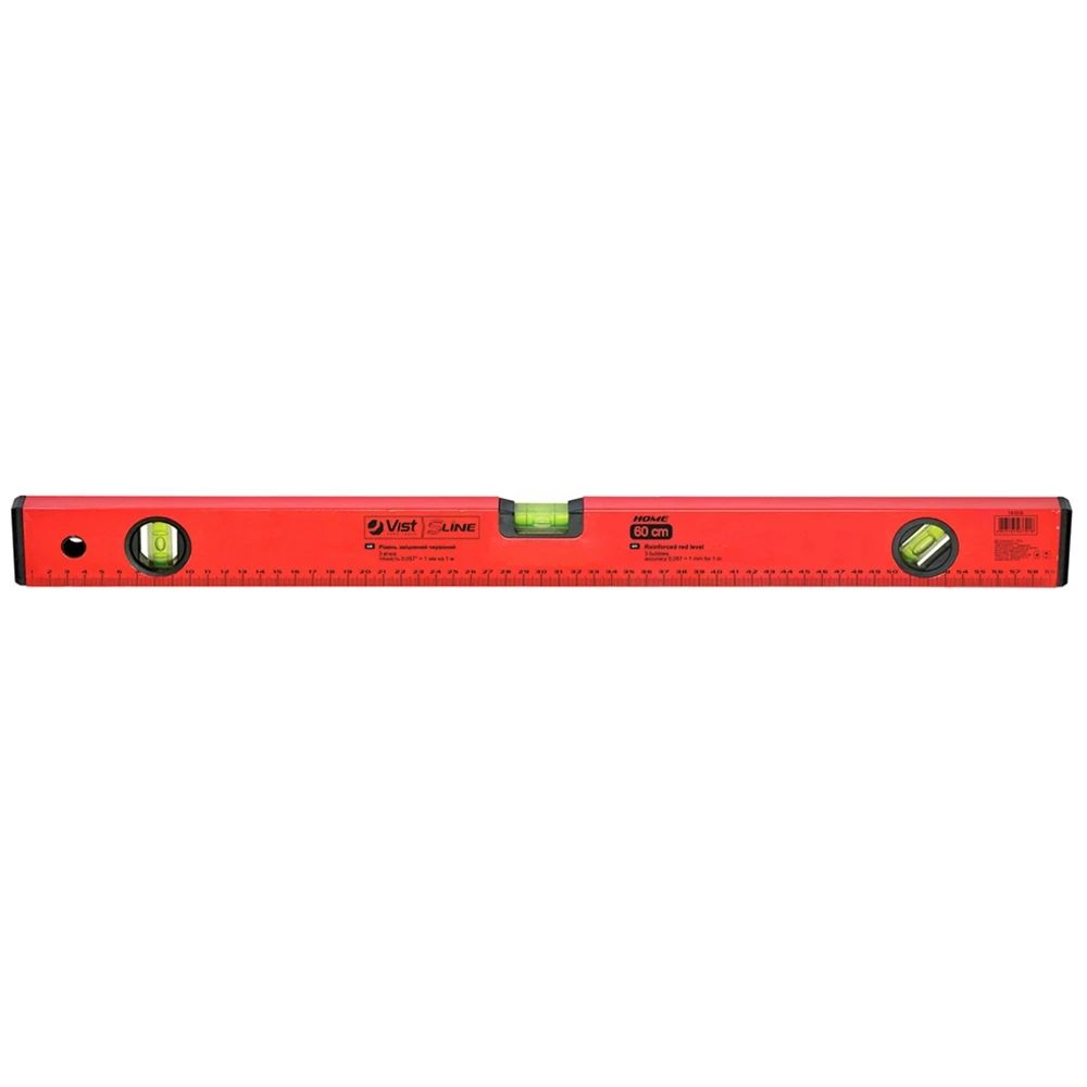 Рівень зміцнений червоний, 3 вічка, 150 см S-line 14-021 — універсальний вимірювальний інструмент для контролю горизонтальних, вертикальних і похилих поверхонь. Оснащений ударостійким алюмінієвим профілем та трьома вимірювальними капсулами для кутів 0°, 45° та 90°. Підходить для будівельних, монтажних і оздоблювальних робіт.