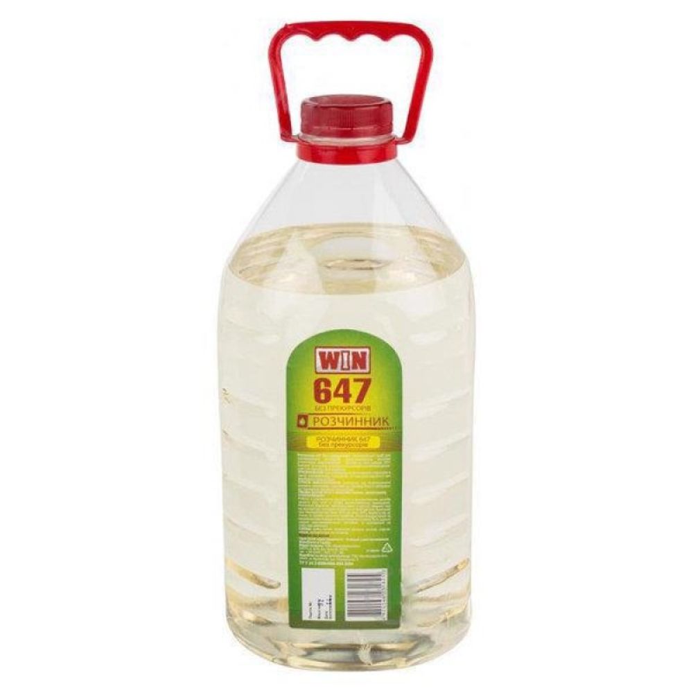 Розчинник 647 без прекурсорів ТМ “WIN”– висоякісний засіб для лакофарбових матеріалів, характеризується якісними розчинними властивостями. Містить в сумі менше 50% ацетону та толуолу, внаслідок чого є безпрекурсорним і не підлягає ліцензуванню.