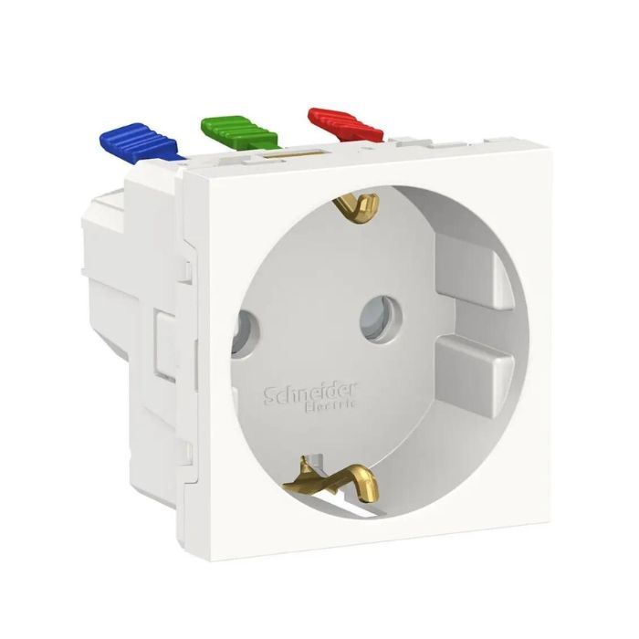 Крім того, розетка Unica New білий з із заземленням і шторками має такі унікальні властивості: швидкозатиск. клеми для зручного підключення проводів, які не потребують спеціальних інструментів.
