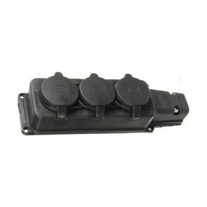 Розетка потрійна (каучук) IP54 (7) призначена для використання у волого- та пилозахищених приміщеннях. Вона ідеально підходить для використання в побуті, офісах, магазинах та інших приміщеннях.