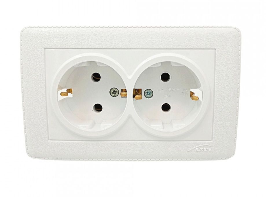 Розетка подвійна з заземленням IP20 біла шкіра Almera DOGU потрібна для підключення пристроїв до мережі. При виборі розетки необхідно звертати увагу на її