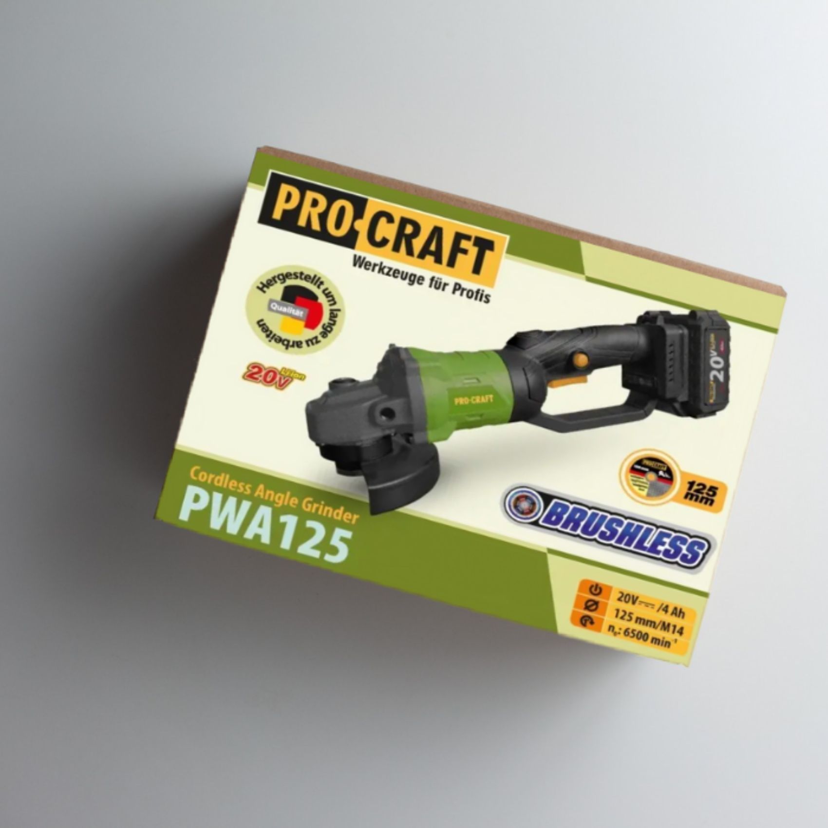 Болгарка Procraft PWA125 имеет несколько заметных преимуществ: она мобильна благодаря аккумуляторной батарее, не требует постоянного подключения к сети, а также имеет безщеточный двигатель, что обеспечивает большую мощность и продолжительность работы. Кроме того, эта болгарка является надежной и удобной в использовании.