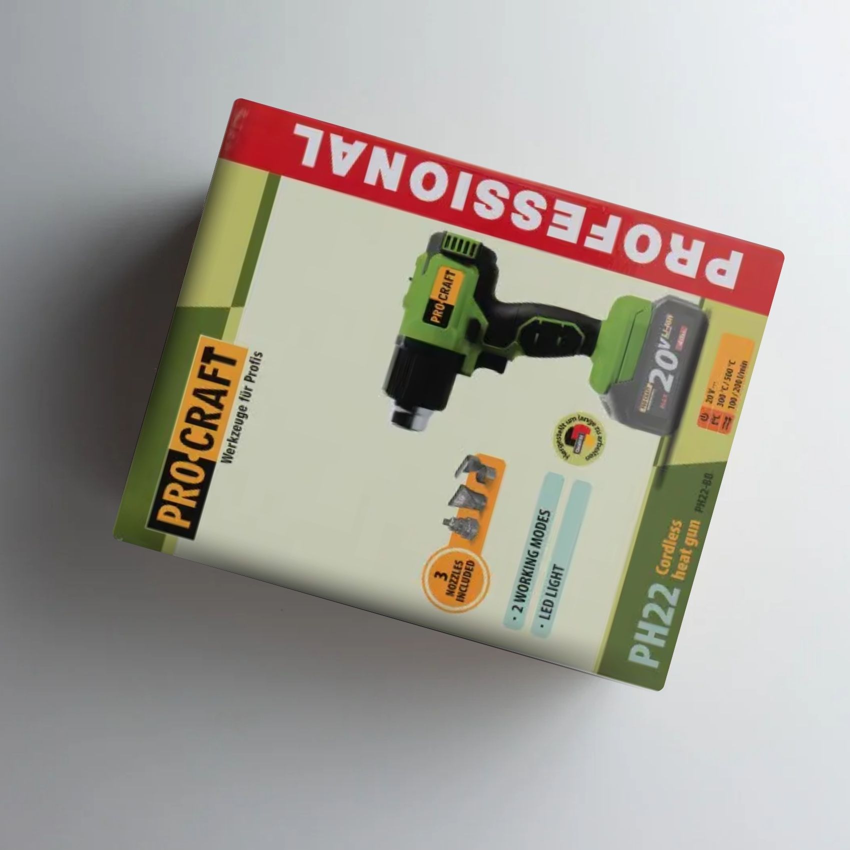 Procraft PH22 - это современный аккумуляторный фен, который сочетает мобильность, мощность и надежность, идеально подходит для профессионального и домашнего использования. Благодаря автономности беспроводной работы, быстрому нагреву и высокой температуре, он прекрасно справляется с задачами, такими как термоусадка, удаление краски или ремонт. Эргономичный дизайн обеспечивает комфортную эксплуатацию даже при длительном использовании, а прочная конструкция гарантирует долговечность.