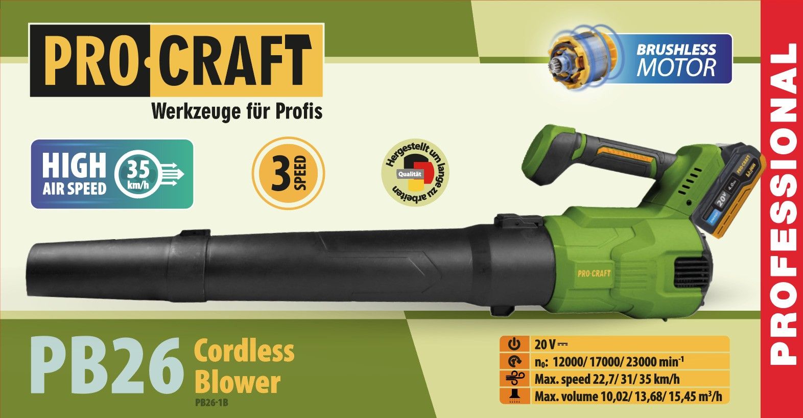 Аккумуляторная воздуходувка Procraft PB26 предназначена для быстрой очистки рабочих мест, гаражей, садовых участков и помещений от пыли, листьев, мелкого мусора или стружки. Благодаря питанию от аккумулятора, модель обеспечивает мобильность, автономность и комфорт при использовании без проводов.