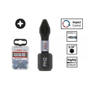 Другие уникальные свойства биты Bosch Impact Control PH2x25 мм (2607002803): - Длина биты 25 мм; - Размер - PH2; - Отличные характеристики для шуруповертов с высокими оборотами; - Предназначена для закручивания и откручивания различных типов крепежных элементов.