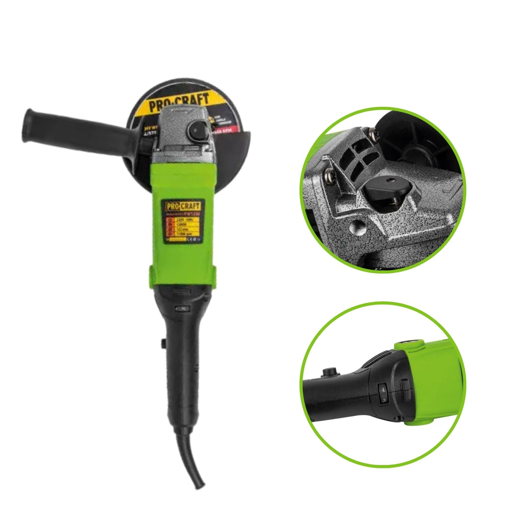 Углошлифовальная машина Procraft PW1200E (125 мм) – компактный и мощный инструмент для шлифовки и резки металла, камня и других материалов. Двигатель мощностью 860 Вт и скорость вращения до 11 000 об/мин обеспечивают высокую производительность и надёжность.