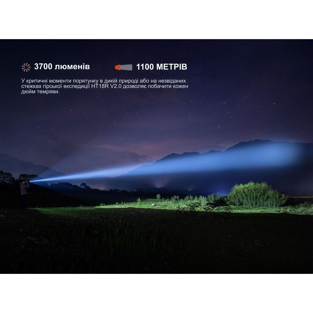 Ручной фонарь Fenix HT18R v2.0 предназначен для задач, требующих максимальной дальности освещения: поисково-спасательных операций, охоты, патрулирования и работ в условиях низкой видимости. Оснащен светодиодом Luminus SFT90 с холодным белым светом и обеспечивает световой поток до 3700 лм с дальностью луча до 1100 м. Работает от аккумулятора формата 21700 с возможностью быстрой зарядки через USB-C.
