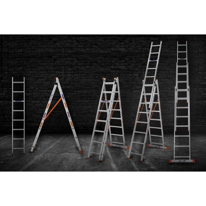 Возможность использования как приставной, раскладной или комбинированной лестницы.