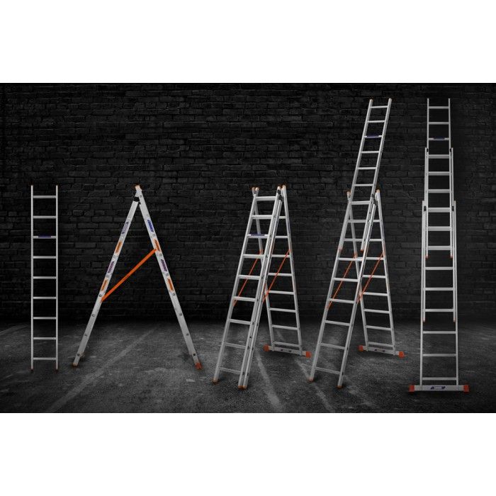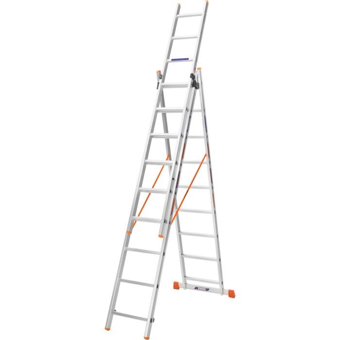 Эта лестница идеально подходит для работ на высоте в строительной отрасли, а также для домашних нужд при ремонте или обслуживании.