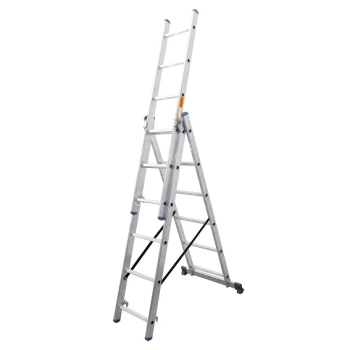 Лестница алюминиевая 3-х секционная BLUETOOLS Expert (3х12 ступеней) - это надежный и удобный инструмент для использования дома, на строительстве или ремонте. Она изготовлена из качественного алюминия, что обеспечивает прочность и долговечность. Лестница имеет 3 секции по 12 ступеней, что позволяет достигать больших высот. Каждая ступень оснащена антискользящим покрытием, что обеспечивает безопасность во время работы. Идеально подходит для различных работ с удобным механизмом складывания для хранения или транспортировки.