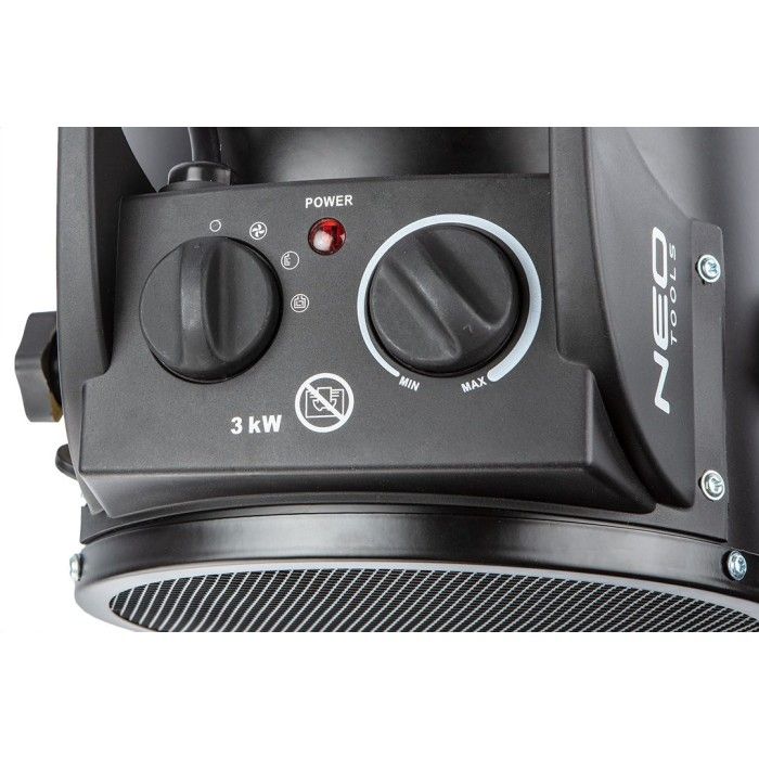 Электрическая тепловая пушка Neo Tools - мощное и надежное устройство для обогрева помещений. Благодаря мощности 3 кВт она быстро и эффективно нагревает помещение любой площади. Пушка оснащена термостатом для точного контроля температуры, а также защитой от перегрева. Легкая в использовании и надежная, она идеально подходит для дополнительного обогрева в доме или офисе. В комплекте поставляются крепления для установки на стену или потолок.