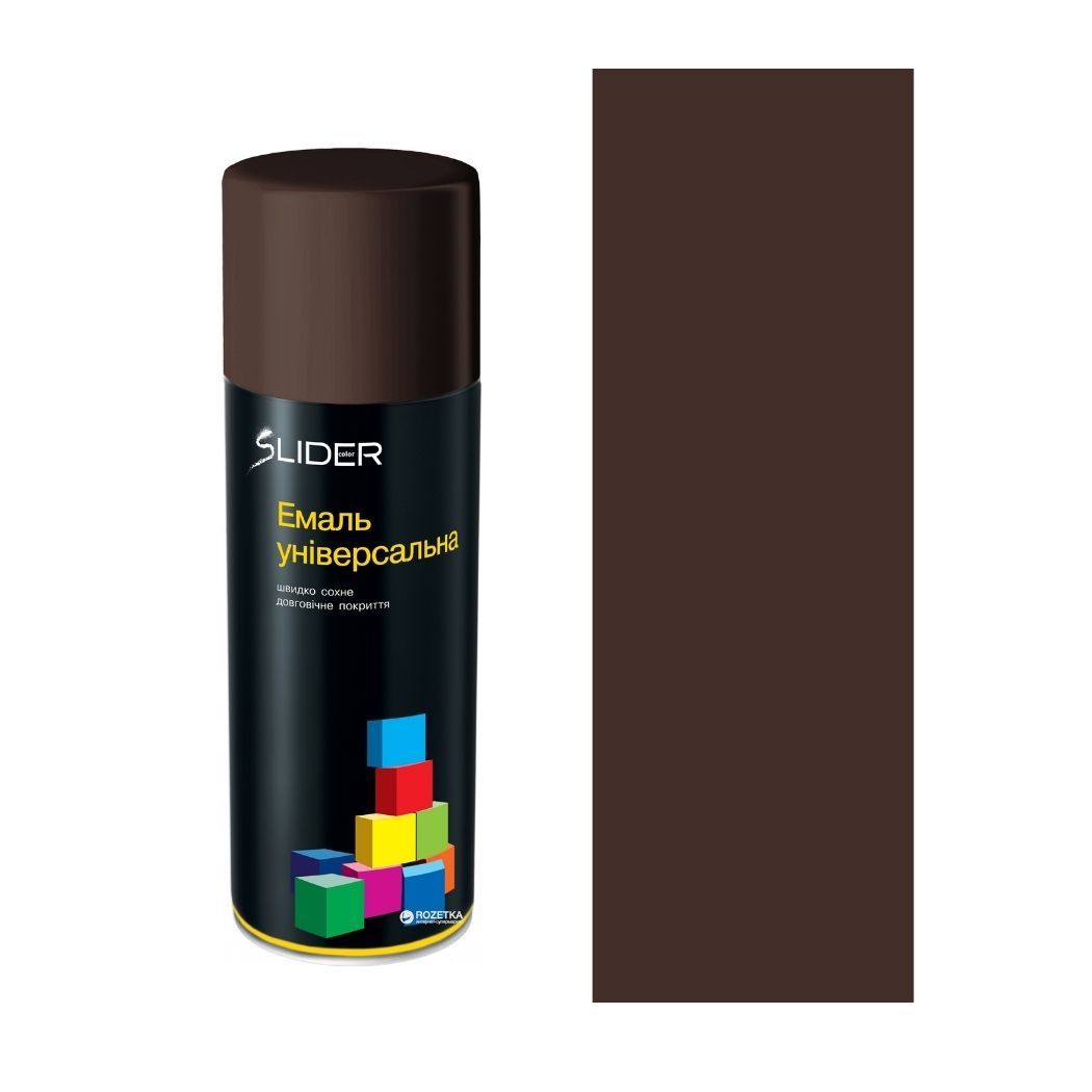 Основные преимущества эмали SLIDER color универсальная 8017 темно-коричневая 400 мл: высокая прочность и стойкость к истиранию, красивый вид благодаря высокому глянцевому степени блеска, быстрое высыхание, легкое нанесение и простое использование.