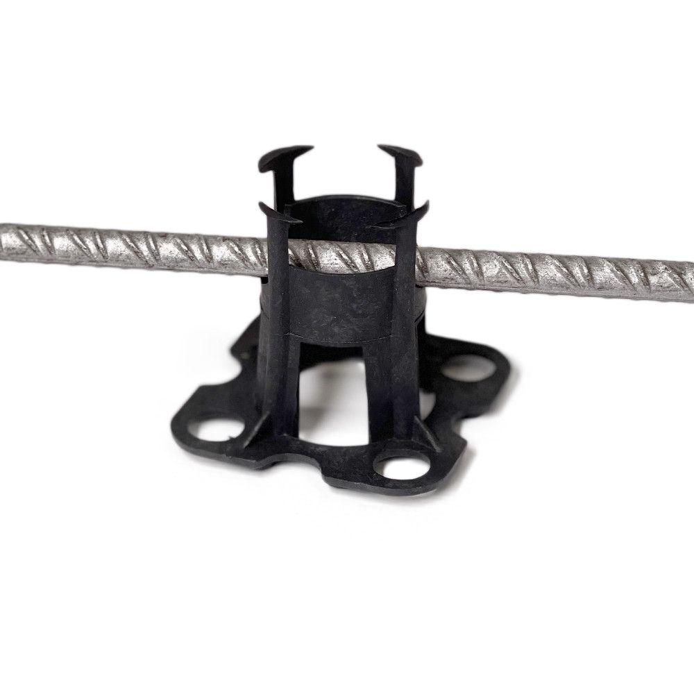 Фиксатор настил эффективно применяется для горизонтальной укладки арматуры на сыпучие поверхности – грунт, щебень, песок. Благодаря расширенной площади основания он также подходит для монтажа на мембраны и пленки.