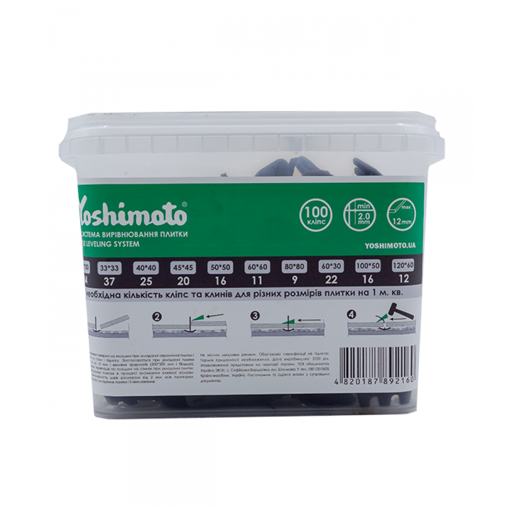 Клипсы Yoshimoto для выравнивания керамической плитки 1,5 мм (100 шт) - это элемент системы выравнивания плитки, который обеспечивает идеально ровную плоскость укладки без перепадов высоты между плитками. Благодаря зазору 1,5 мм клипсы создают точное и аккуратное шовное расстояние, облегчая процесс облицовки.