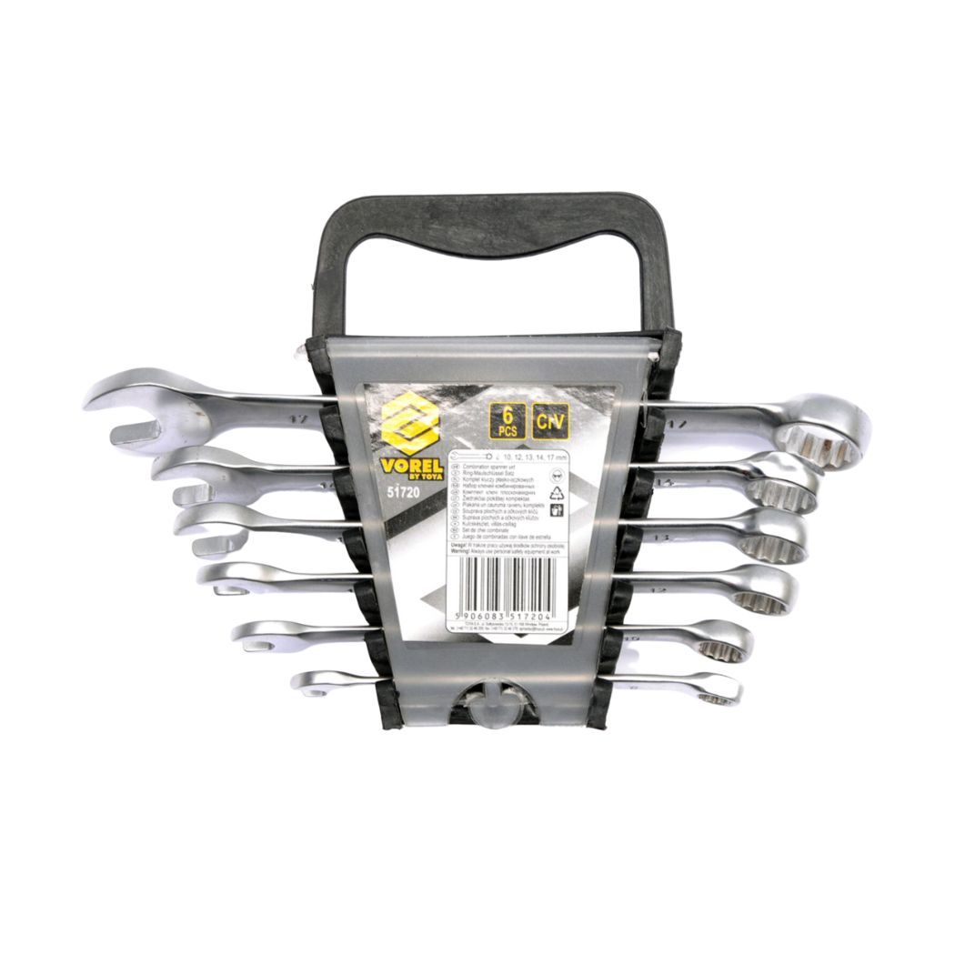 Ключи для гаек рожковые накидные Cr-V, М 8-17 мм, комплект 6 штук идеально подходят для использования в хозяйстве, автосервисах и строительстве. Они могут использоваться для откручивания и закручивания гаек разных размеров, обеспечивая надежное соединение.