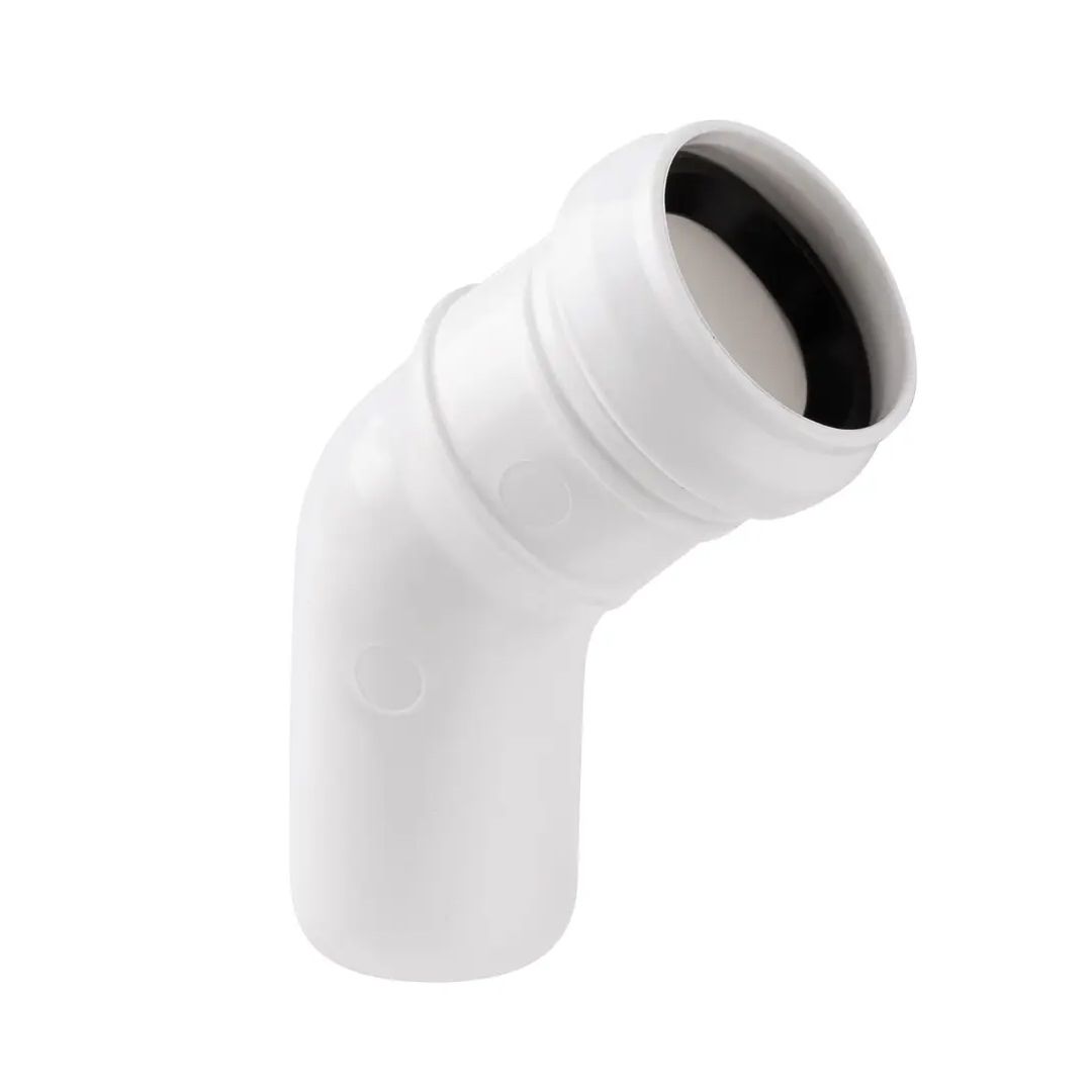 Это колено из полипропилена белого цвета подходит для использования в канализационных системах. Оно обеспечивает надежное соединение труб и позволяет эффективно отводить сточные воды.