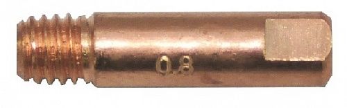 Контактный концевик для полуавтоматических аппаратов с диаметром 0,8 мм, резьбовым отверстием М6 и длиной 25 мм. Упаковка содержит 50 штук.