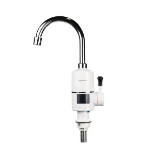 Компактный электрический водонагреватель с возможностью быстрого нагрева воды. Оснащен цифровым дисплеем и термостатом для точной настройки температуры. Идеально подходит для кухни, дачи или мест без горячего централизованного водоснабжения.