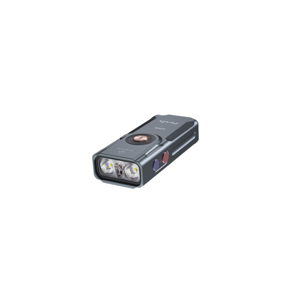 Fenix E06R — компактный фонарь бирюзового цвета, сочетающий функции классического освещения, УФ-подсветки и лазерной указки. Модель оснащена несколькими излучателями и подходит для повседневного использования, проверки документов, подачи световых сигналов и работы в условиях ограниченной видимости. Несмотря на миниатюрные размеры, фонарь обеспечивает яркость до 700 люмен и дальность луча до 110 метров.
