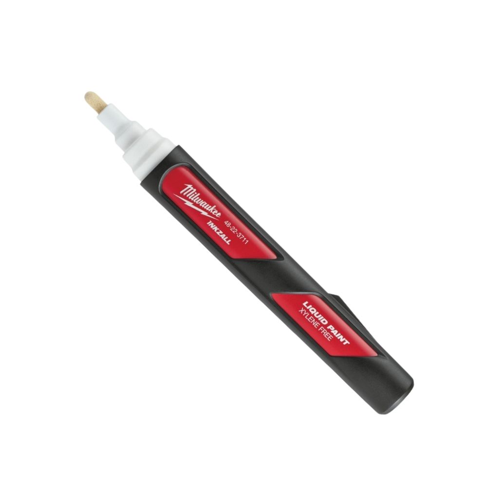 Маркер Milwaukee InkZAll белого цвета предназначен для нанесения стойких меток на разные поверхности, включая металл, пластик, бетон, дерево и стекло. Благодаря жидкой краске маркировка остается четкой даже на грязных или шершавых материалах, а быстрое высыхание обеспечивает удобство работы.