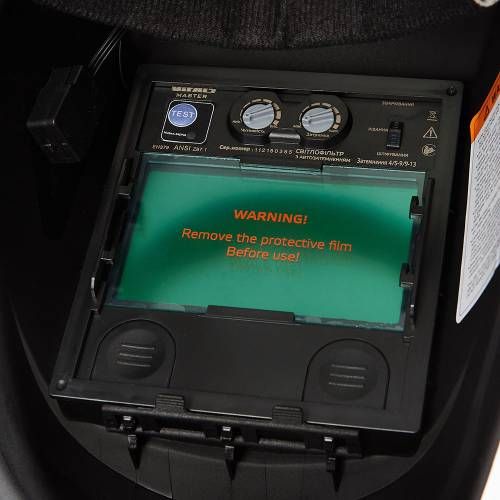 2 режима регулирования степени затемнения: DIN 5-DIN 9 (для сварки на малых токах) и DIN 9 - DIN 13 (для стандартных сварочных задач);