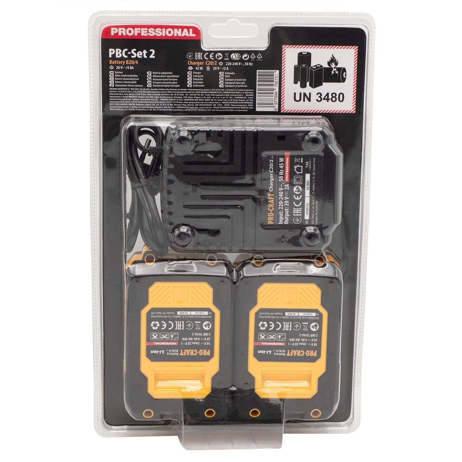 Набор аккумуляторов с зарядным устройством Procraft PBC-set2 (20 В, 4 Ач, Li-Ion)