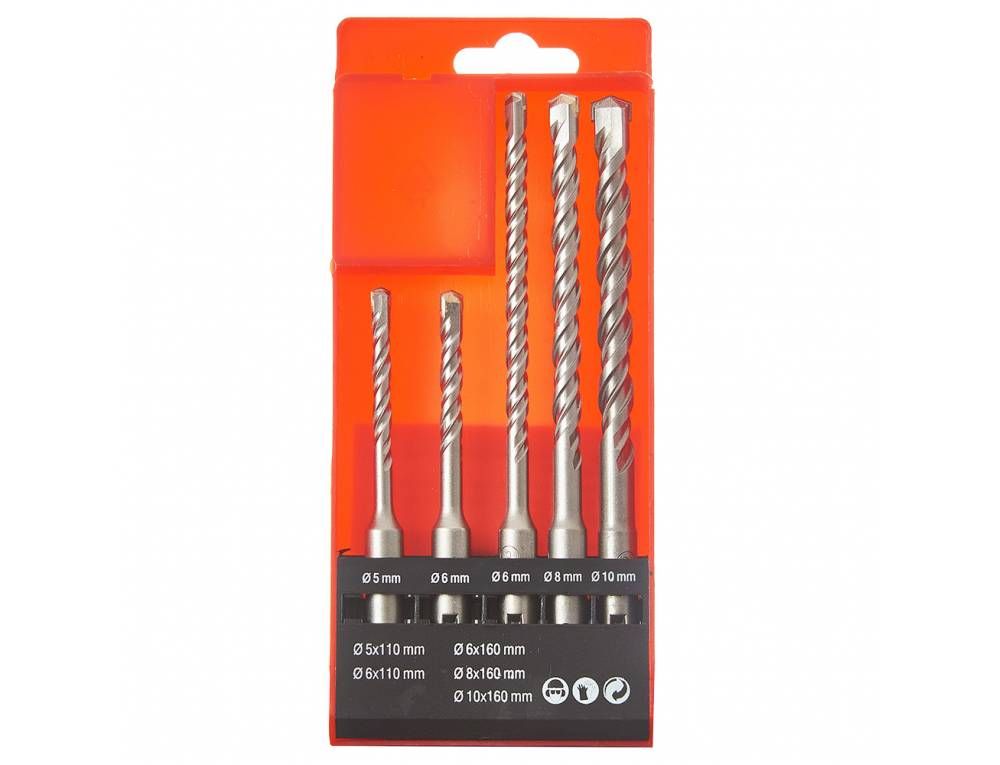 Набор свёрл Vitals Master SDS-Plus 5 шт - это незаменимый инструмент для работы с бетоном, камнем и кирпичом. В наборе есть свёрла с разными диаметрами (5, 6, 8, 10 мм) и рабочими длинами (100, 160 мм), что позволяет выполнять разнообразные задачи. Использование SDS-plus хвостовика обеспечивает надежное крепление свёрла и легкую замену.