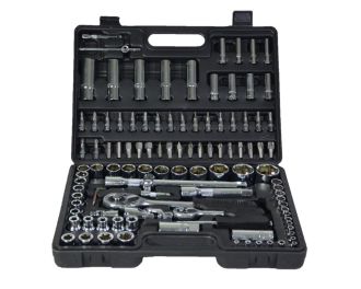 Этот набор головок с трещоткой 1/2" и 1/4" содержит 108 единиц и поставляется в кейсе. Изготовлен из хром-ванадиевой стали, этот набор предназначен для использования в автомобильной индустрии. Вес набора составляет 6,79 кг.