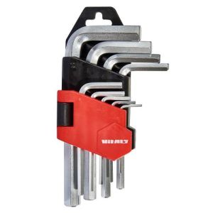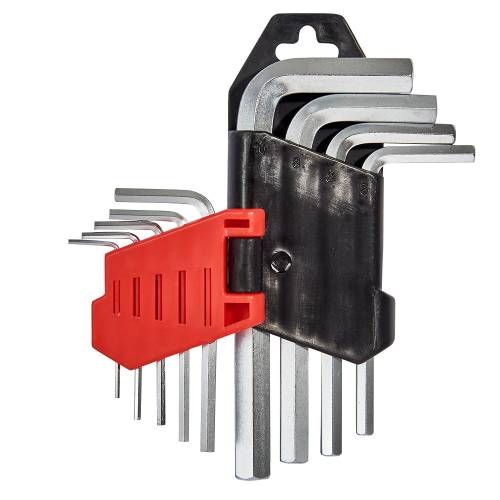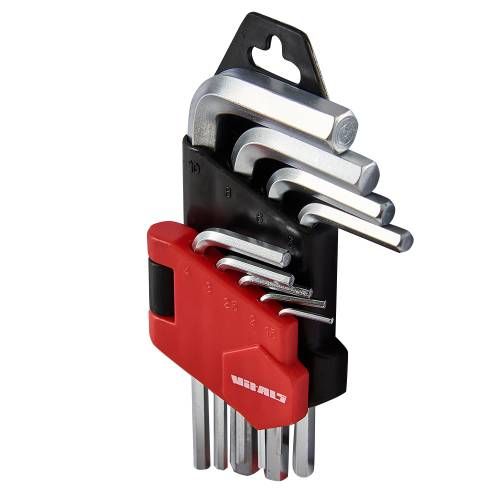 Комплектность: 9 штук ключей с рабочими размерами 1,5 мм, 2 мм, 2,5 мм, 3 мм, 4 мм, 5 мм, 6 мм, 8 мм и 10 мм.