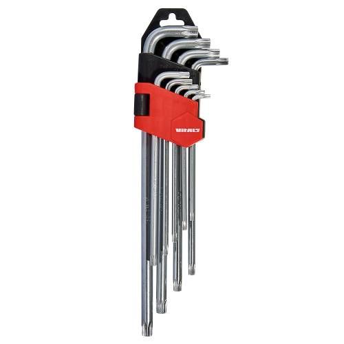 Набор шестигранных ключей продолженных Torx 9 шт. Vitals Master изготовлен из стали CrV. Такой набор содержит ключи разных размеров: T10, T15, T20, T25, T27, T30, T40, T45, T50. Они имеют шестигранную форму и удлиненную штифт, что позволяет удобно работать в труднодоступных местах. Ключи изготовлены из прочной и надежной стали CrV, что обеспечивает долгий срок службы и защищает от износа. Этот набор ключей является незаменимым инструментом для ремонта и хобби работ, где нужно использовать шестигранные винты с головками Torx. Благодаря разным размерам, вы сможете легко выполнять любые задачи, связанные с шестигранными винтами.