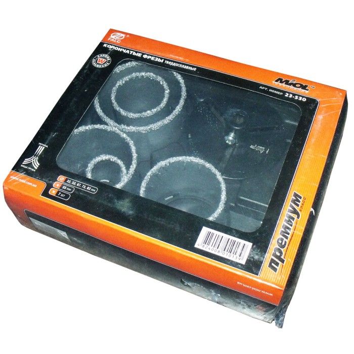 Набор коронок с вольфрамовым напылением (7 шт.) (33, 53, 67, 83) Premium в кейсе Falc - это инструмент высокого качества, который поможет вам легко и быстро выполнять различные виды работ по обработке дерева. Коронки изготовлены из надежного материала, который обеспечивает долговечность и точность работы. Они подходят для выполнения отверстий разного диаметра и глубины, что позволяет вам использовать их в различных проектах.