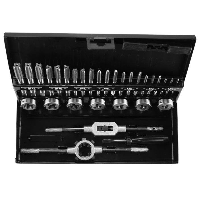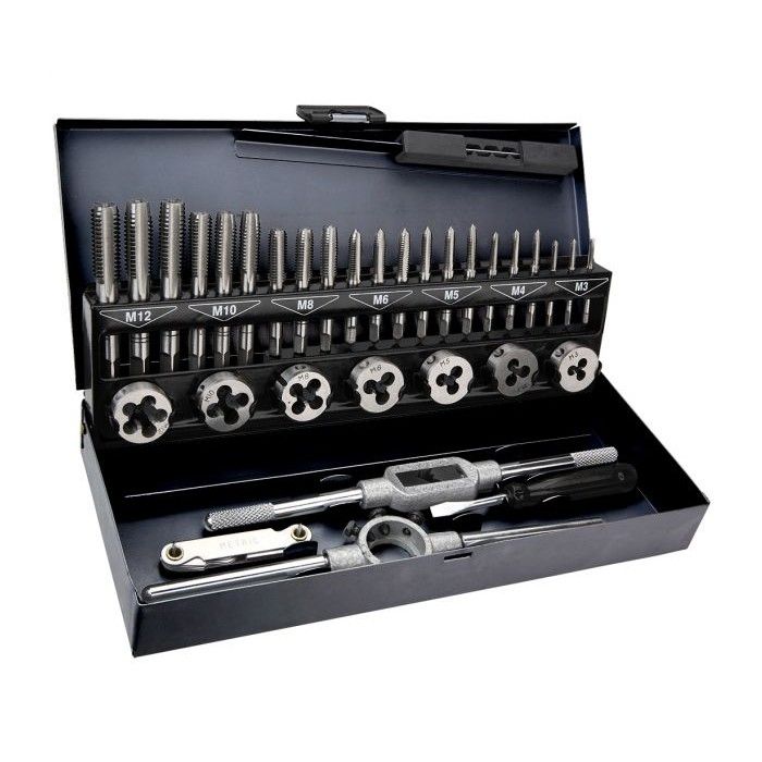 Этот набор идеально подходит для использования в гараже, мастерской, на даче или в доме для выполнения различных ремонтных работ, сборки мебели или других работ, где нужен резьбовой инструмент.
