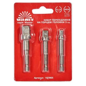 Набор переходников для торцевых головок 1/2", 1/4" и 3/8" 3 шт. Vitals изготовлен из высококачественной стали 40CR. Длина переходников составляет 65 мм. Размер посадочного квадрата составляет 1/4". Этот набор является незаменимым для ремонта и обслуживания автомобилей и других технических устройств. Инструменты имеют удобную конструкцию, которая позволяет легко выполнять работы по снятию и закручиванию различных деталей.