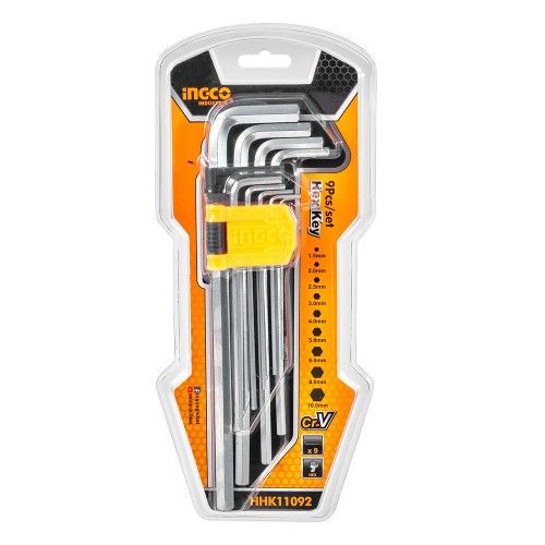 Набор продленных шестигранных ключей 9 шт. 1,5–10 мм INGCO - незаменимый инструмент для профессиональных и домашних нужд. Изготовленные из высококачественного хромванадиевого сплава CrV, эти ключи обладают надежностью и долговечностью. Благодаря термообработке и хромированному покрытия, они имеют прочную структуру и стойкость к коррозии. Размер ключа в диапазоне 1,5-10 мм позволяет выполнять работу с различными размерами гаек и болтов. Этот набор является неотъемлемым инструментом для автомобилистов, строителей, механиков и всех, кто занимается ремонтом или сборкой мебели. Он поставляется в удобном пластиковом кейсе, что позволяет легко хранить и переносить инструмент.