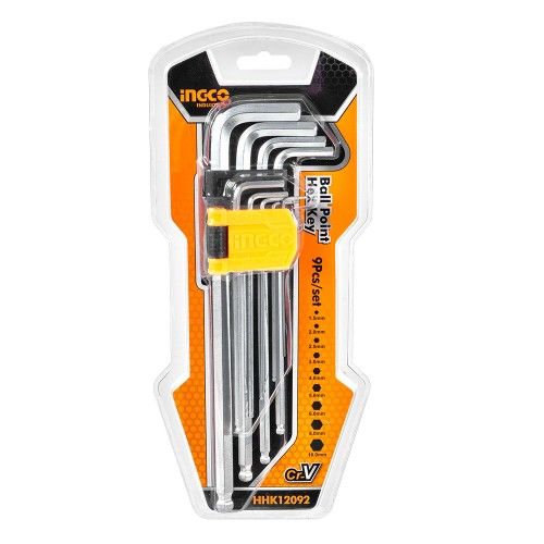 Дополнительные свойства и преимущества набора подлинных шестигранных ключей с шариком 9 шт. 1,5–10 мм INGCO: 1. Удобная упаковка обеспечивает удобное хранение и перенос набора. 2. Каждый ключ имеет отметку с размером, что облегчает выбор нужного инструмента. 3. Материал CrV обеспечивает стабильную работу ключей в течение длительного времени. 4. Хромированное покрытие придает эстетический вид и предотвращает коррозию. 5. Набор имеет разные размеры ключей, что позволяет использовать их для разных задач. 6. Каждый ключ обладает устойчивостью к износу и долговечностью.