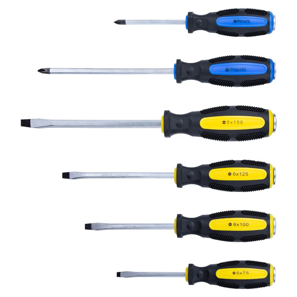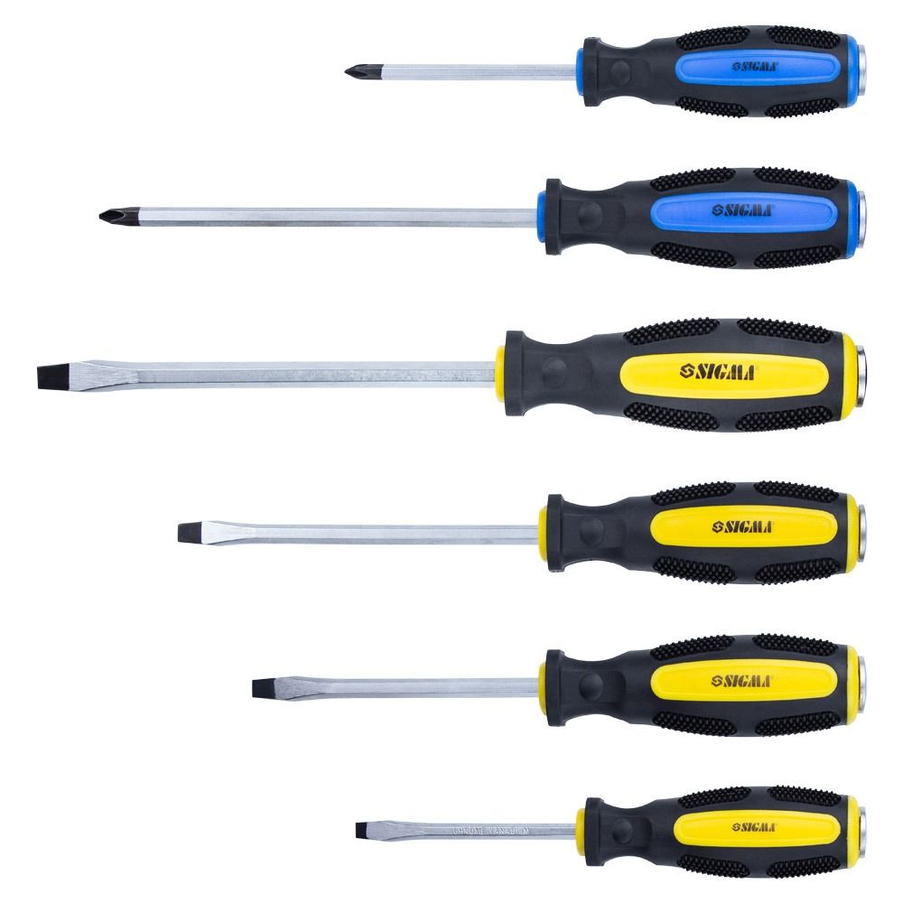 Набор ударных отверток SIGMA (6 шт) сделан из стали CrV и предназначен для работы с тугими резьбовыми соединениями. Отвертки оснащены магнитными наконечниками, облегчающими фиксацию креплений и имеющими прочную конструкцию для выдерживания ударных нагрузок.