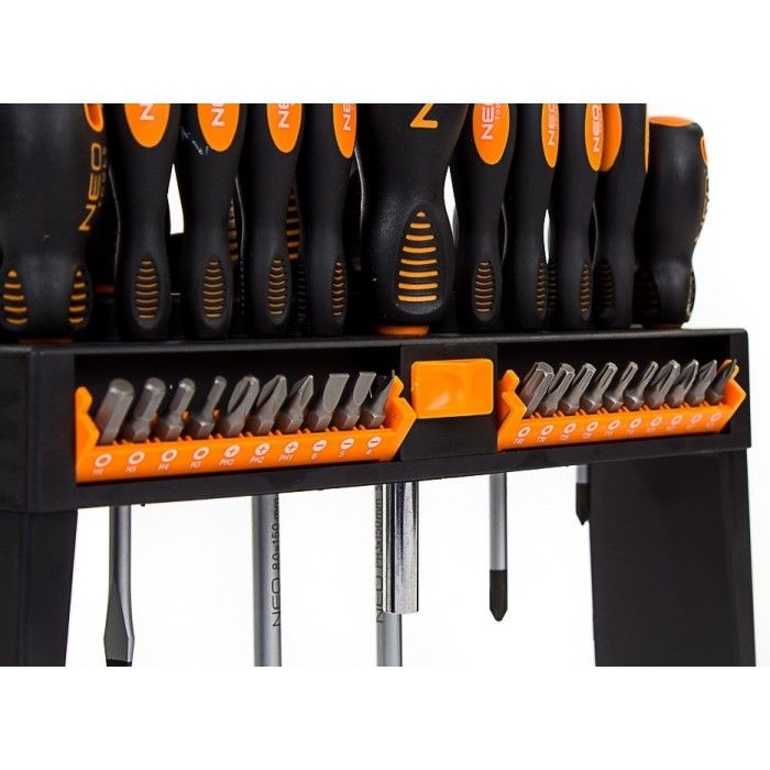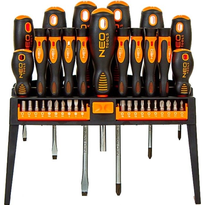 Гибкость использования, высокое качество материалов, широкий функционал и надежность - вот главные преимущества набора отверток Neo Tools.