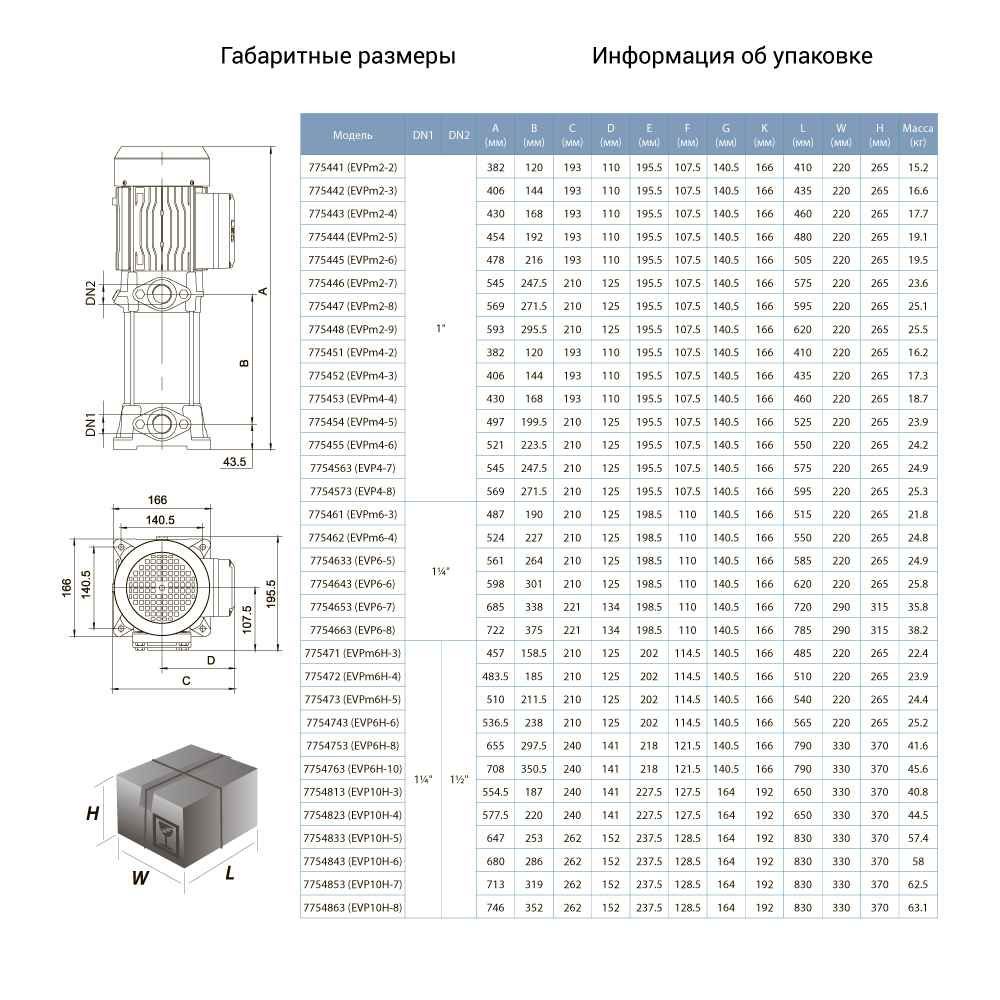 Насос центробежный многоступенчатый вертикальный 1.1кВт Hmax 82м Qmax 67л/мин LEO 3.0 EVPm2-7 (775446)