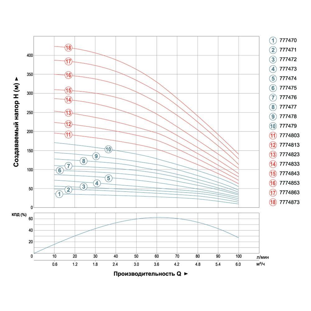 Максимальный напор: 116 м (рабочий – 88 м)