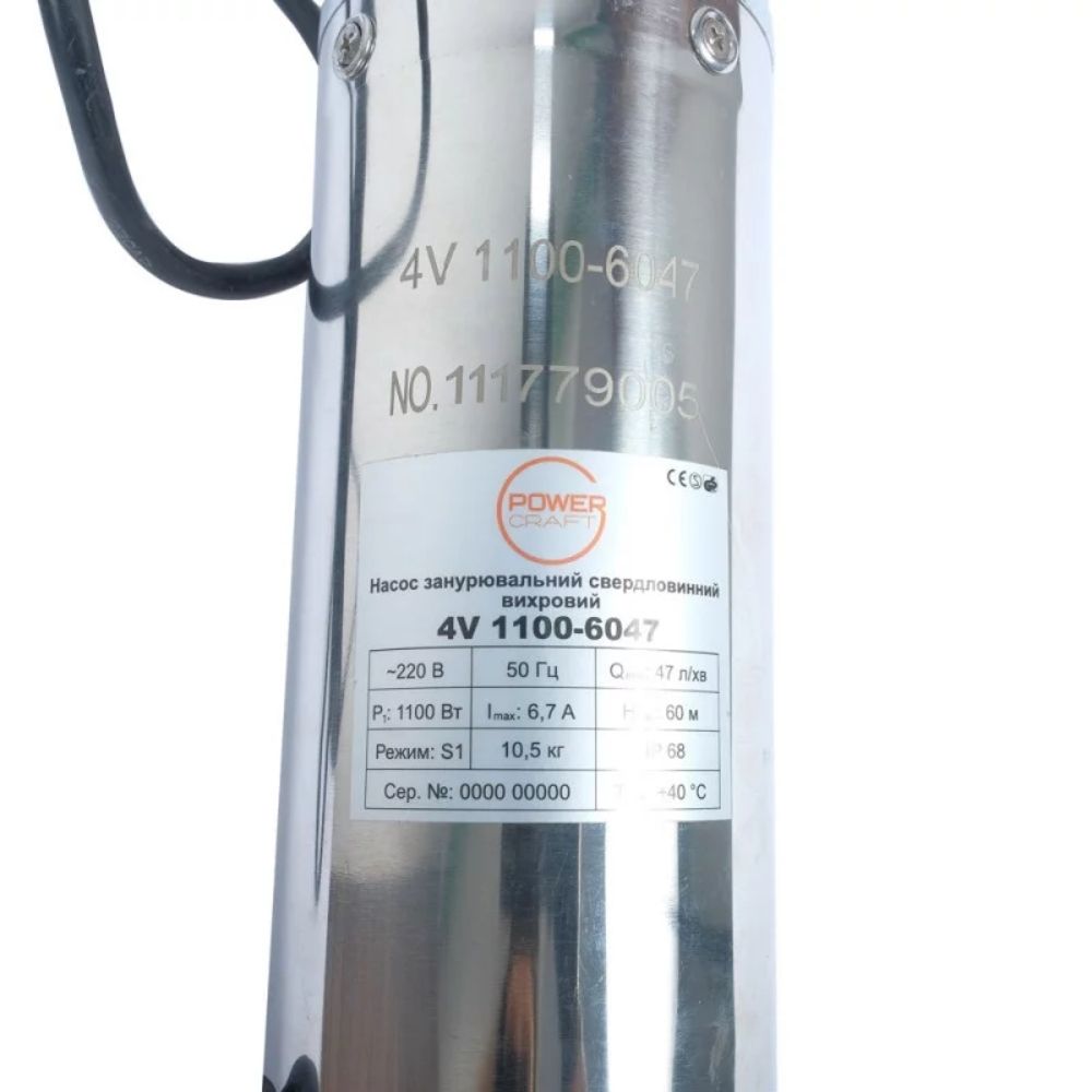 Погружной скважинный насос Powercraft 4V 1100-6047 – вихревой насос мощностью 1,1 кВт для подачи чистой воды из скважин, колодцев и резервуаров. Обеспечивает стабильное давление и производительность, подходит для водоснабжения частных домов и хозяйств.