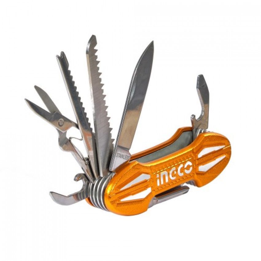 Нож мультифункциональный 15-в-1 9,5 см INGCO может использоваться для ремонта, резки, склеивания, разрезания, покраски и многих других задач. Он также может быть использован на кемпинге, в поездках и на природе.