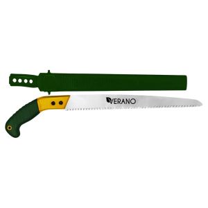 Ножовка длиной 350 мм предназначена для эффективного распила сырой древесины, бревен, брусьев и веток деревьев. Рабочее полотно из стали 65Mn размером 355х42 мм и толщиной 0,9 мм обеспечивает высокую прочность и долговечность. Большие зубцы размером 5 мм имеют 3D-заточку и обратный угол наклона (рез на себя), что способствует быстрому и чистому резу. Шаг зубцов – 7TPI, что оптимально для работы с древесиной.