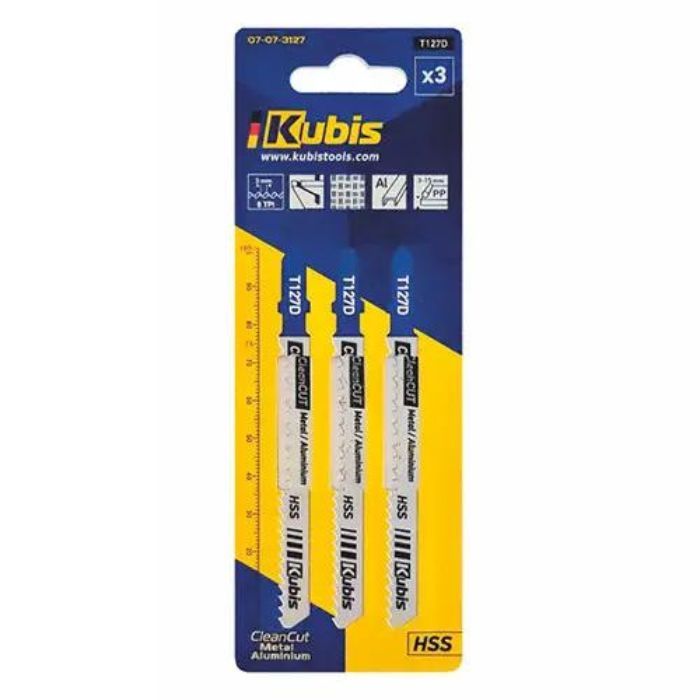 Пилки для лобзика Kubis 07-07-3127 предназначены для чистого реза металла, пластика и алюминия. Изготовлены из высококачественной быстрорежущей стали (HSS), обеспечивают точность и надежность. Толщина реза составляет от 3 до 15 мм, длина полотна - 100 мм, рабочая длина - 75 мм. В комплекте 3 шт.