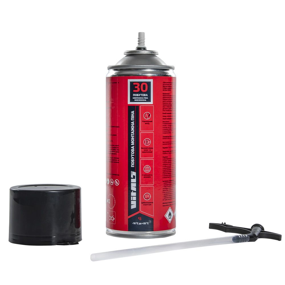 Монтажная пена Vitals Fix всесезонная (баллон 300 мл) с трубочкой – однокомпонентная полиуретановая пена для бытового использования. Обеспечивает качественное уплотнение и теплоизоляцию стыков, удобное в применении без дополнительного оборудования.