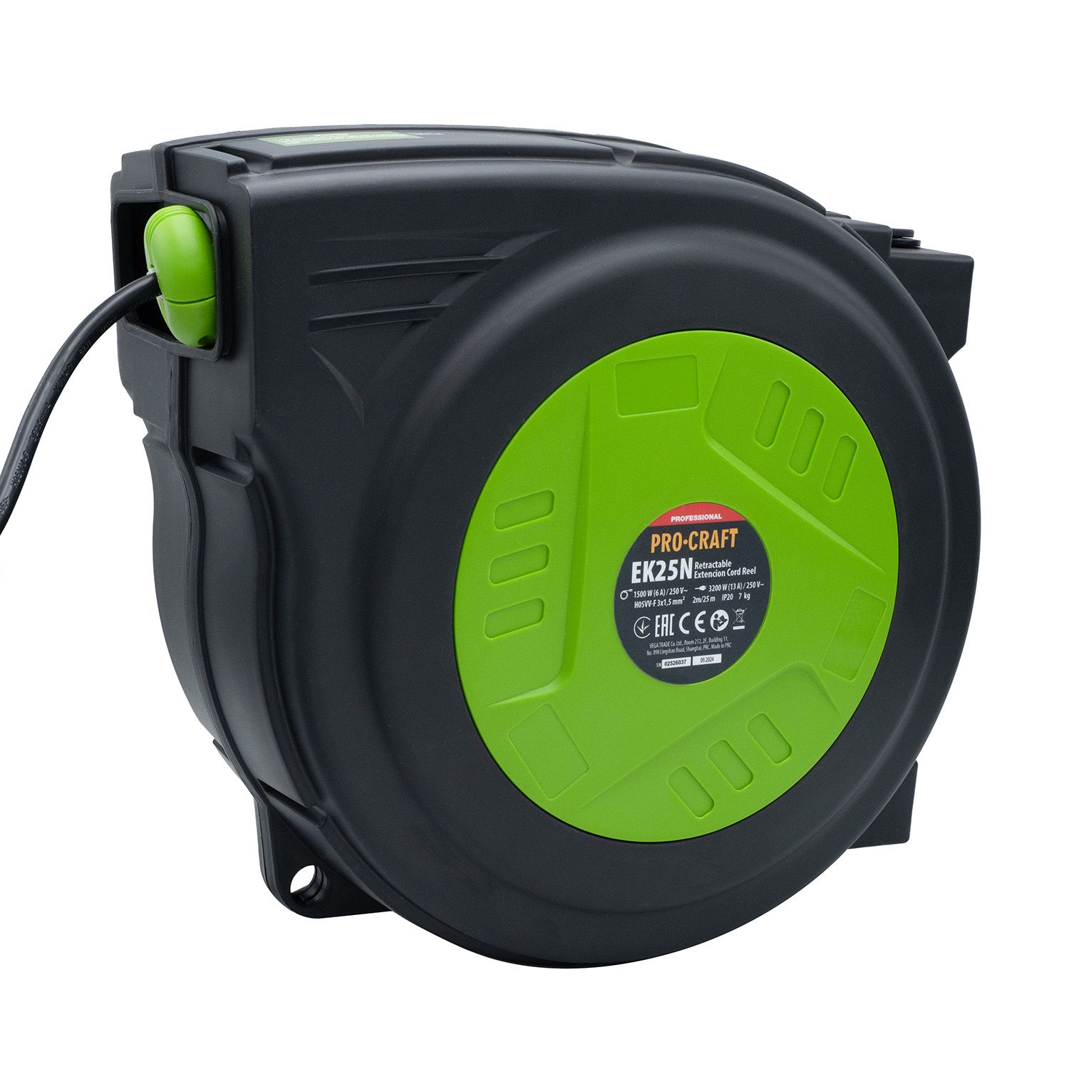 Удлинитель Procraft EK25N с кабелем длиной 25 метров - надежное решение для работы с электроинструментами и бытовой техникой. Благодаря автоматической катушке кабель легко наматывать и удобно хранить. Прочный резиновый кабель с медными жилами обеспечивает стабильное питание, а защищенная розетка гарантирует безопасность при эксплуатации.