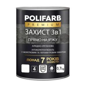Грунт-эмаль Polifarb Защита 3в1 с молотковым эффектом – это универсальное покрытие для металла, сочетающее свойства антикоррозионной защиты, грунта и декоративной эмали. Может наноситься непосредственно на ржавчину, создавая прочную, блестящую цветовую поверхность коричневого шоколада.