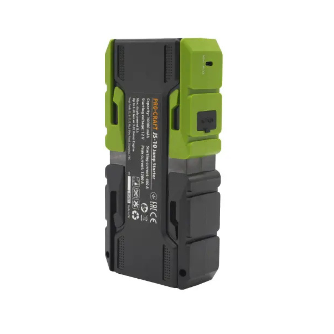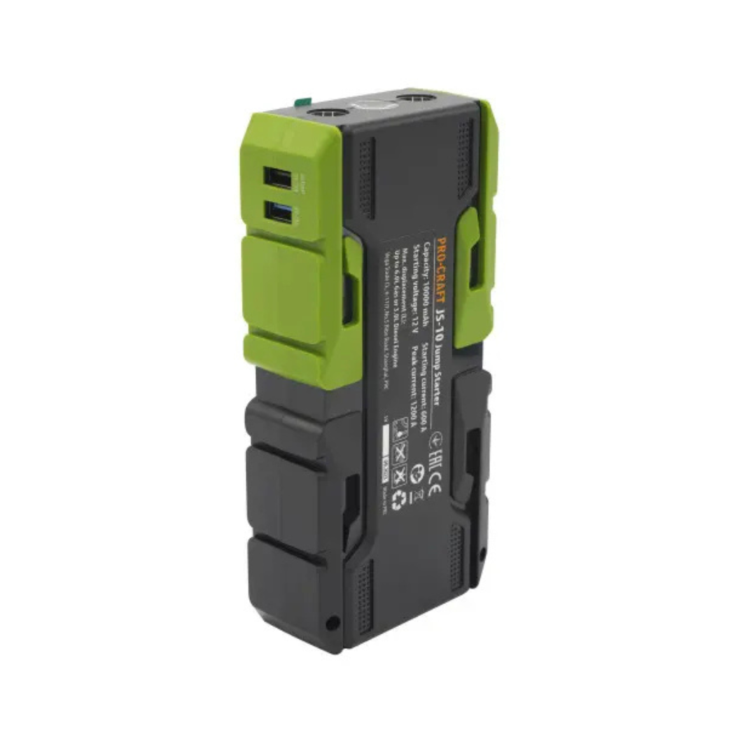Пуско-зарядное устройство Procraft JS10 идеально подходит для использования с автомобилями, мотоциклами и другими транспортными средствами с аккумуляторными батареями.